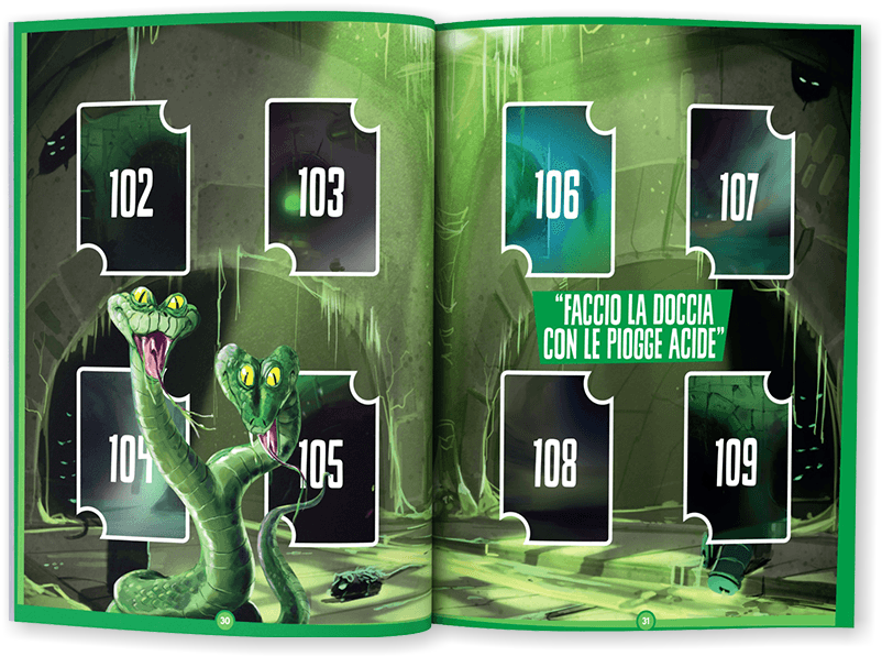 Questo valore può essere un numero o un’icona a sfondo bianco o nero. Viene usato per il Gioco con le card, le reGole sono descritte in fondo all’album.